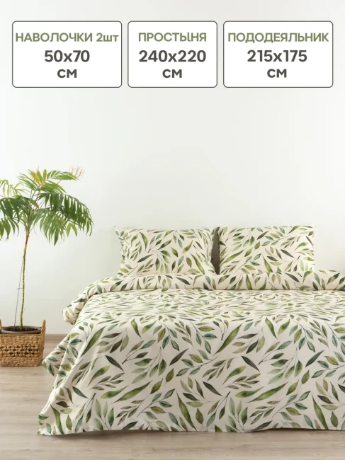 Комплект постельного белья ТМ Блакит сатин "Листья" 2-х сп.