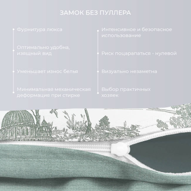 Двухсторонний пододеяльник дает возможность использовать разные цветовые комбинации набивных рисунков, а вшивная молния значительно облегчит заправку одеяла.