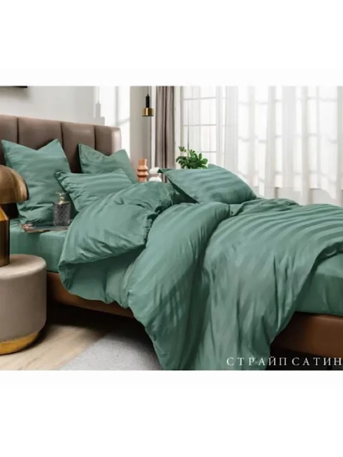 Комплект постельного белья ТМ Блакит противомикробный страйп сатин "Зеленый" евро