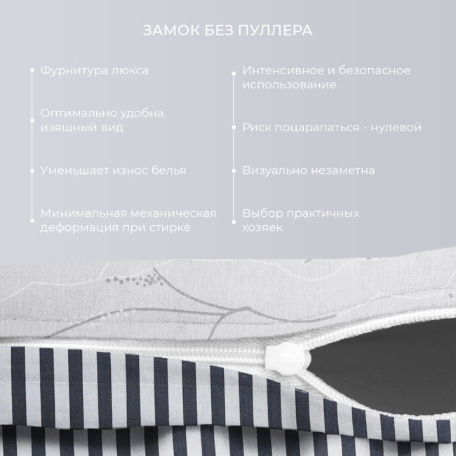 Двухсторонний пододеяльник дает возможность использовать разные цветовые комбинации набивных рисунков, а вшивная молния значительно облегчит заправку одеяла.