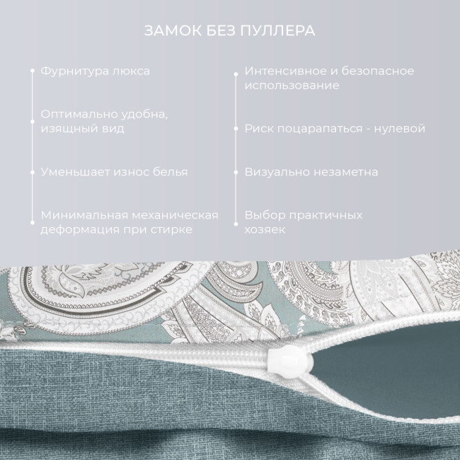 Двухсторонний пододеяльник дает возможность использовать разные цветовые комбинации набивных рисунков, а вшивная молния значительно облегчит заправку одеяла.