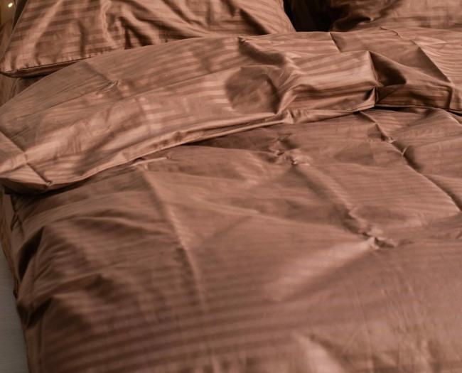 Комплект постельного белья ТМ Блакит страйп сатин "Коричневый" 1,5сп.