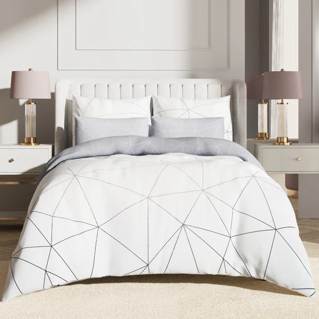 Мальберри — это комплект из сатина (хлопок) с продуманной расцветкой и двухсторонним пододеяльником: можно быстро менять настроение спальни — повернули на другую сторону, и у вас новый акцент без лишних покупок. Этот комплект постельного белья воплощает графическую утонченность, где пододеяльник представлен в безупречном белом цвете, служащем холстом для деликатного геометрического узора. Тонкие, строгие линии образуют завораживающую сеть многоугольников, создавая эффект современной динамики и трехмерной глубины. Основные подушки гармонично продолжают этот лаконичный мотив. Дополняют ансамбль две контрастные подушки, выполненные в нежном светло-сером оттенке, также украшенные схожим, но более тонким геометрическим рисунком. Завершает композицию изысканный отворот пододеяльника, повторяющий спокойный серый тон, что придает всему комплекту сбалансированность и современную элегантность.