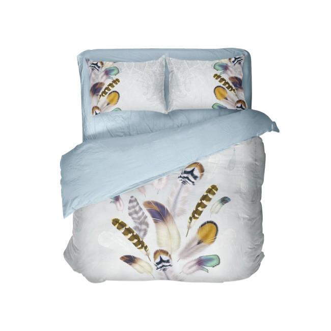 Пододеяльник ТМ Блакит сатин Перья голубой евро