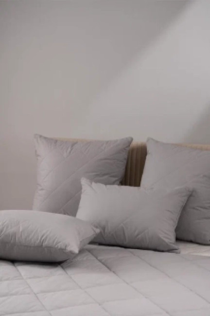 Анатомическая стежка чехла подушки значительно увеличивает срок службы изделия и создает дополнительный комфорт. Остальной объём подушки занимает высокосиликонизированное микроволокно DownFill, называемое «синтетическим пухом» – волокном нового поколения. Степень упругости изделия - средняя. Рекомендована химическая чистка.