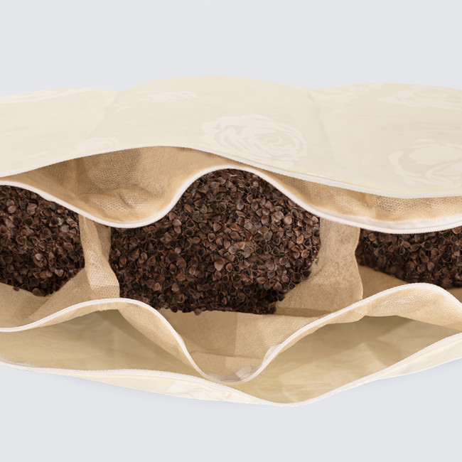Гречневая лузга - это оболочка, окружающая семена гречихи, мягкая и хрупкая. Благодаря особой структуре лузги, гречневая подушка от ECOTEX легко адаптируется по форме головы, обеспечивая правильную поддержку в области шейных позвонков, создаёт эффект точечного массажа. Чтобы привыкнуть к этой необычной подушке со 100% натуральным эко-наполнителем, нужно время; могут быть необычные ощущения в шейном и плечевом отделах, шумность наполнителя, но уже через несколько дней Вы адаптируетесь и не сможете представить себе более комфортного сна.