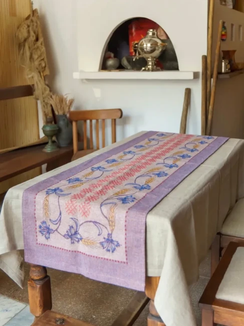 Дорожка на стол декоративная выполнена из натуральной ткани (состав: лен-89% , хлопок-11%) от белорусского производителя РУПТП "Оршанский льнокомбинат" бренд "Белорусский лён" / "Поле кветак". Размер дорожки - 45x150 см. Дорожка на стол украсит обеденный стол и защитит скатерть и столешницу от загрязнений, от воздействия горячих блюд, царапин столовых приборов. Можно использовать каждый день, стильная дорожка создаст атмосферу красоты не только за праздничным столом дома или на даче, но и сделает уютным Ваш вечер в летней беседке, на пикнике. Дорожка декоративная для украшения стола изделия изо льна являются гипоаллергенными и износостойкими. Лен, как и хлопок, сравнительно легко отстирывается.