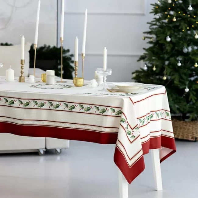 ЭКСКЛЮЗИВНЫЙ ДИЗАЙН: классический орнамент из веточек остролиста и красных ягод, дополненный элегантной каймой в красно-золотых тонах. Идеально подходит для новогодних и рождественских ужинов, семейных торжеств и уютных вечеров. Создайте атмосферу волшебства за вашим столом!