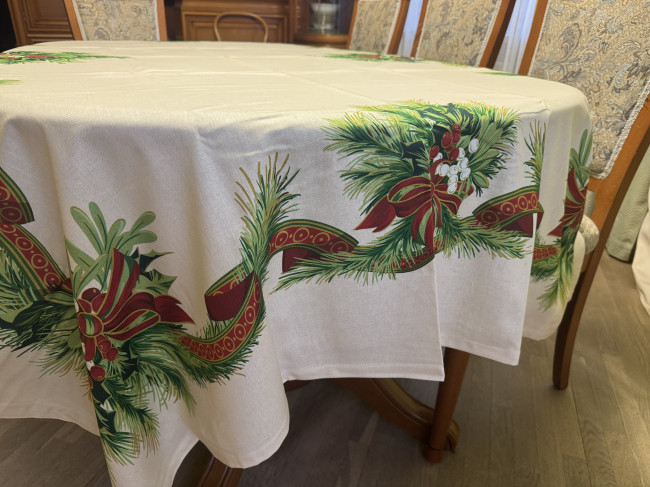 Скатерть обработана защитными веществами, которые препятствуют всем видам загрязнений, обеспечивают превосходный внешний вид изделий на протяжении долгого времени.