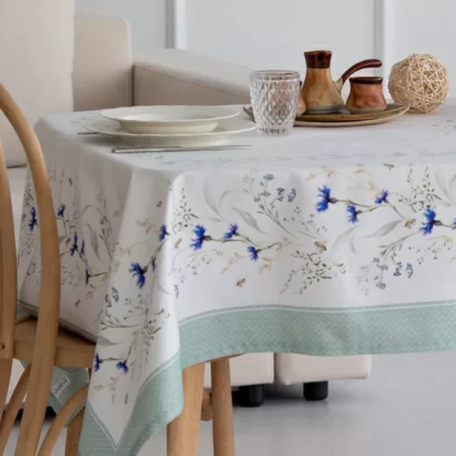 СВОЙСТВА ТКАНИ (состав, плотность, пропитка): Состав ткани 100% хлопок. Все скатерти и дорожки коллекции «ВАСИЛЬКИ» выполнены из ткани для столового белья плотностью 190г/кв.м и имеют специальную пропитку (влаго-, масло- и грязеотталкивающую обработку). Принт на ткани нанесен методом цифровой печати с использованием высококачественных красителей, благодаря чему изделия не линяют и не меняют свой цвет после многократных стирок. Рисунок по ткани виден только на лицевой стороне.